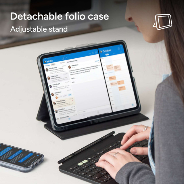 - Detachable Keyboard: Keyboard and case separate so you can set your iPad on one surface and the keyboard on another.