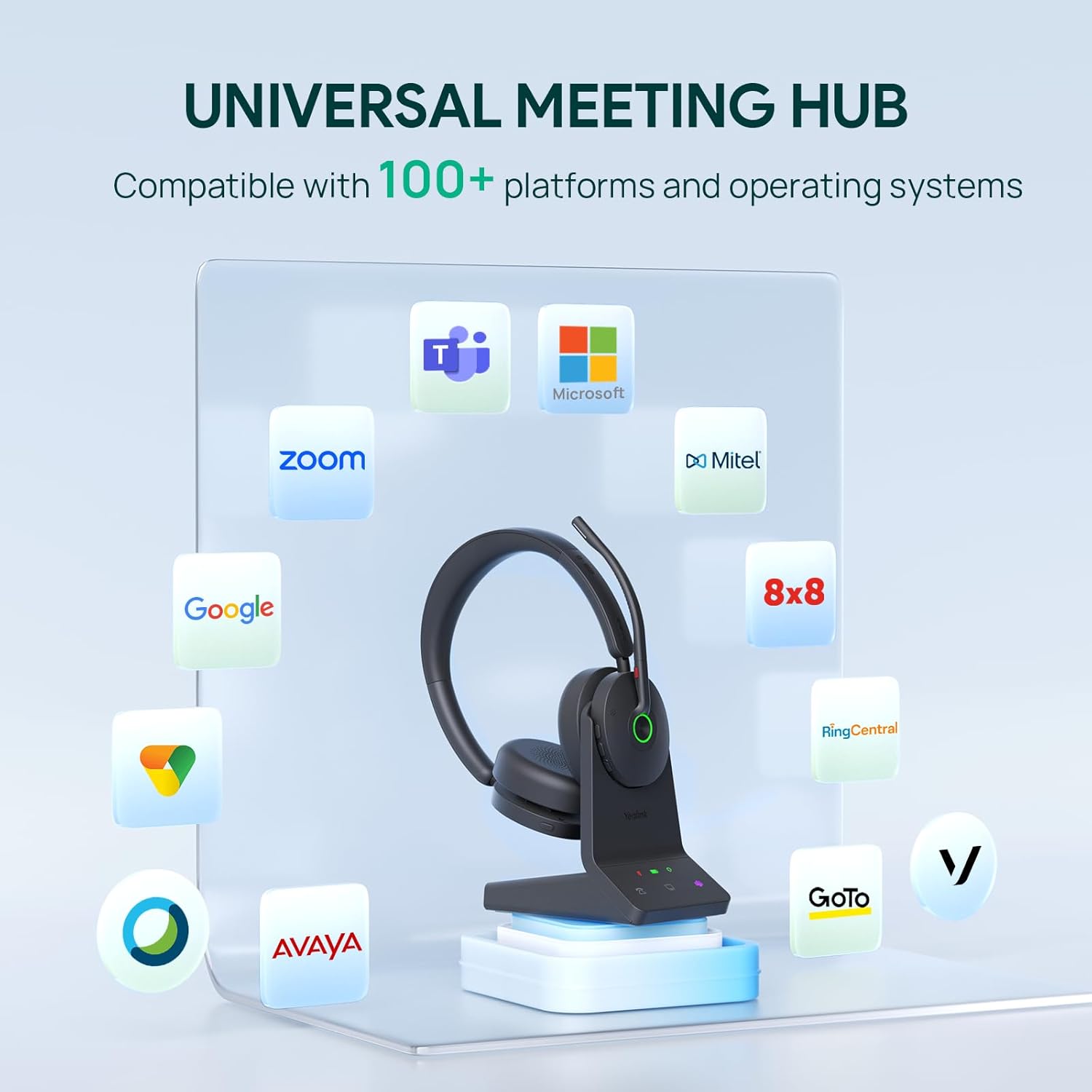 Compatible with PCs, laptops, mobile devices, and supported desk phones (EHS62 adapter required). Designed for use with leading Unified Communications platforms such as Zoom, Webex, and other UC applications.