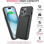 Experience unstoppable power and superior protection for your iPhone 15 Plus and Pro Max with this high-performance charging case. With an impressive 8000mAh battery capacity, this case will keep you powered up for extended periods. Say goodbye to low battery anxiety and enjoy uninterrupted connectivity throughout the day.